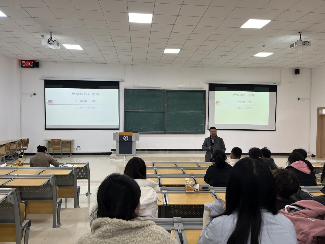新学期、新开始、新希望! 更是开展学生管理和教育的重要时间节点!为了让学生更好更快地全身心投入到学习生活中,进一步加强学生的思想政治教育,学院院长宁宝权于3月19日下午三点在勤学楼101教室给我院2021级全体学生讲授开学第一课。