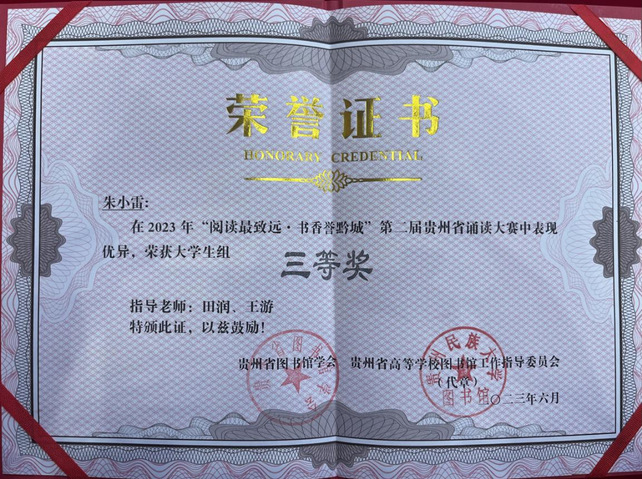 6月16日,“阅读最致远·书香誉黔城”第二届贵州省诵读大赛决赛在贵州省图书馆举行。该大赛由贵州省图书馆学会、贵州省高等学校图书馆工作指导委员会、贵州省图书馆主办,全省各级各类图书馆积极组织读者参加。本届大赛从4月选拔开始,历经初赛、复赛,98个作品,涉及38所高校进入复赛。由我校图书馆田润老师指导的作品经过层层选拔,脱颖而出入围20强进入决赛。