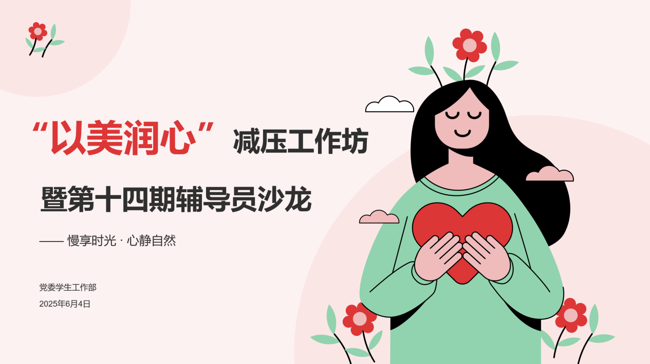 为进一步提升学校辅导员心理健康教育工作能力,将积极心理学深度融入学生工作实践,着力提升辅导员队伍心理健康水平与职业幸福感,2025年6月4日,党委学生工作部精心策划的“以美润心”减压工作坊暨第十四期辅导员沙龙在心理咨询中心顺利举行。本次活动由心理咨询中心主任郑元媛主持,我校全体辅导员参加了本次活动。