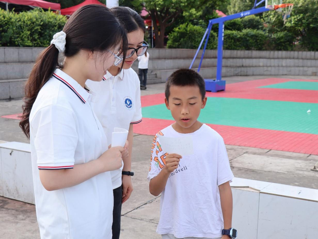 活动现场,团队成员向广场的村民说明来意,形成以个人为单位的语言互动区。家长们手持团队精心制作的生活普通话小卡片,在场景卡片引导下练习“超市购物怎么问价”“医院挂号如何沟通”等实用对话;孩子们则围成一圈对《悯农》《咏鹅》等简单诗篇,用稚嫩的声线尝试朗诵。此外,团队还将古诗学习设计成“诗词接龙”“看图猜诗”等互动游戏,并以集章兑换小奖品的方式,让孩子们主动参与朗读。