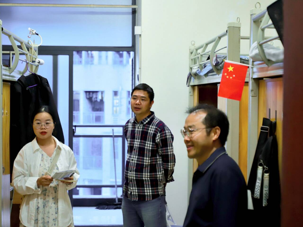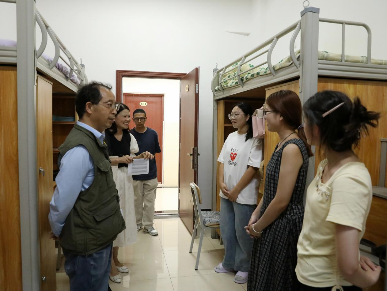 8月28日晚,文学与新闻学院党委书记龙尚国、院长许兴阳、党委副书记杜云、副院长支媛,学生科(团委)负责人李娆宇,新闻系主任余索,辅导员杨杰、陆邹,25级汉语言文学专业班主任吴丹走进新生宿舍,慰问入校新生。